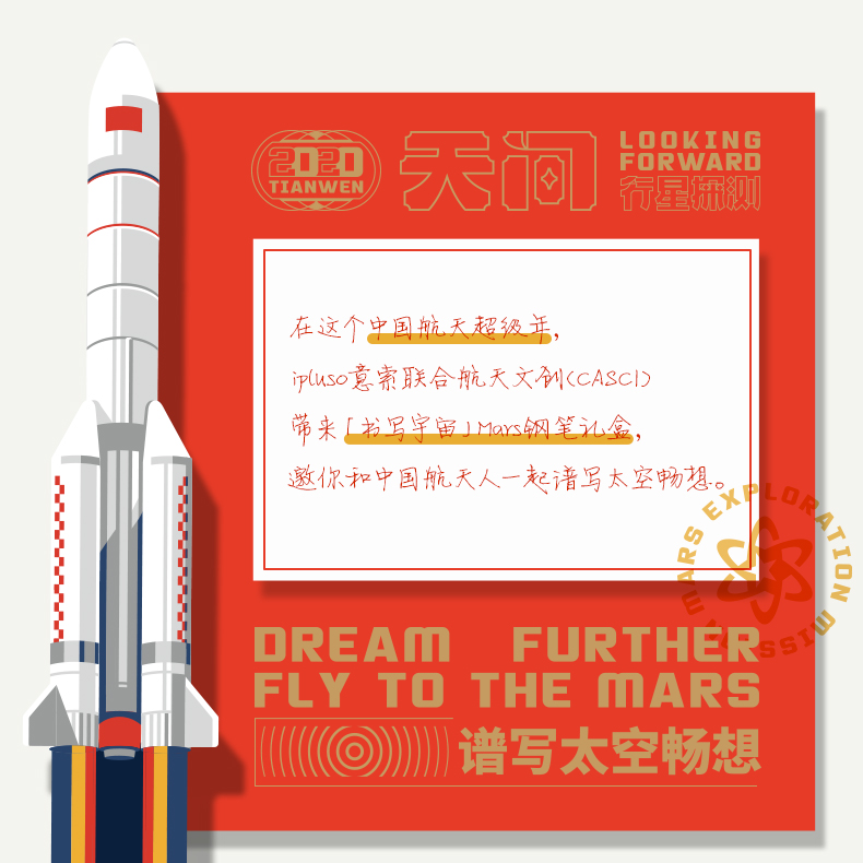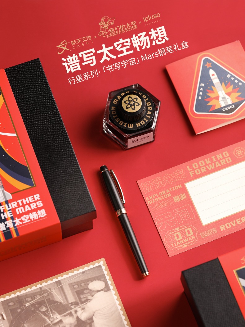 意索行星系列钢笔礼盒航天文创联名Mars黑金刻字定制情侣对笔男士商务办公高颜值礼物女 航天文创(CASCI)联名「书写宇宙」Mars钢笔 0.5mm(F尖) 官方标配 明尖