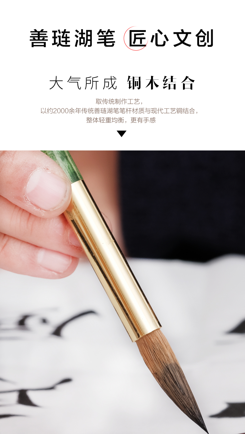 沧澜湖州善琏湖笔毛笔狼毫毛笔级练字专用书法家中号行楷隶篆羊毫兼毫铜木杆黑骑士湖羊 中楷兼毫 沧澜 单支礼盒 善琏湖笔 文创铜木系列(中国十大名笔)