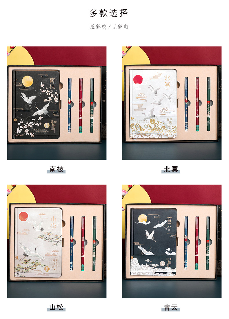 中国风复古文具礼盒套装仙鹤手账本中性笔创意礼品初中生高年级学习用品故宫文创小礼品送女老师同学开学礼物 音云(彩页本)+3只仙鹤笔