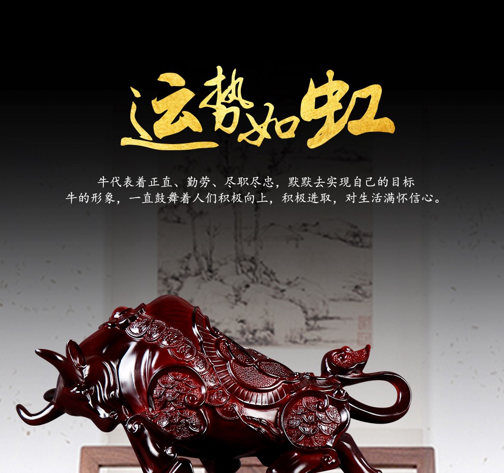 招财风水牛摆件 办公室办公桌装饰工艺品 客厅电视柜家居摆件 公司店铺送朋友开业礼品 运势如虹