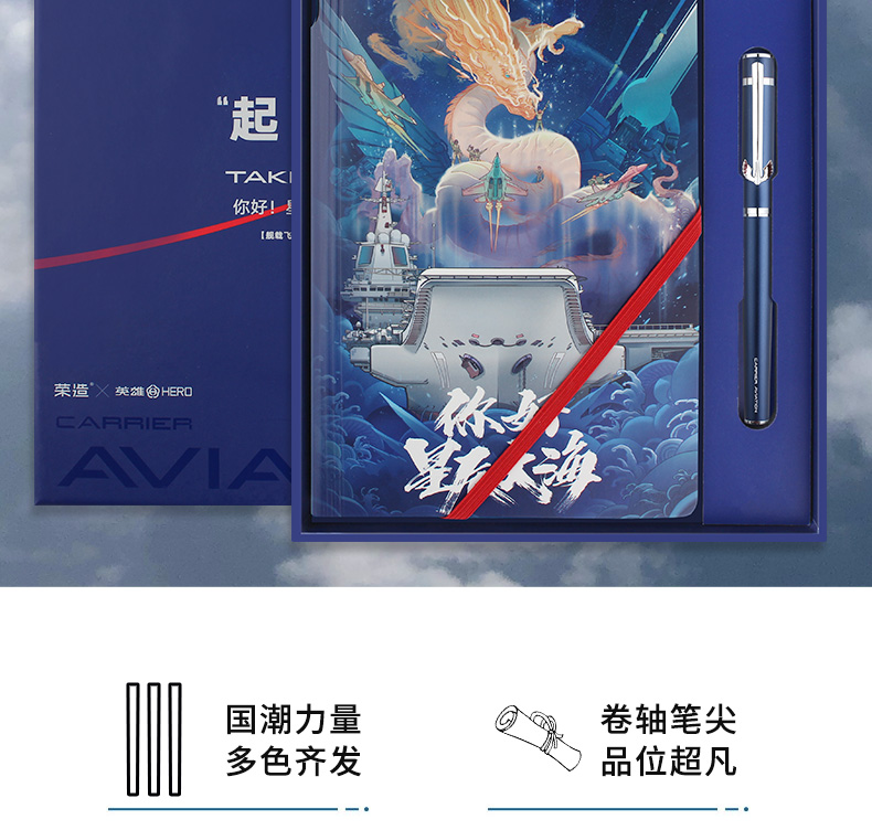 钢笔礼盒 英雄×山东舰 H605D舰载飞行联名款系列 笔记本礼盒 签字笔礼盒黑色