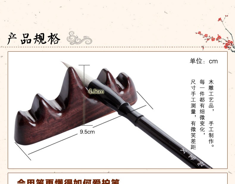 红木笔搁笔托毛笔架 五指峰笔山 文房书法用品 文房四宝