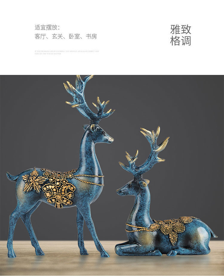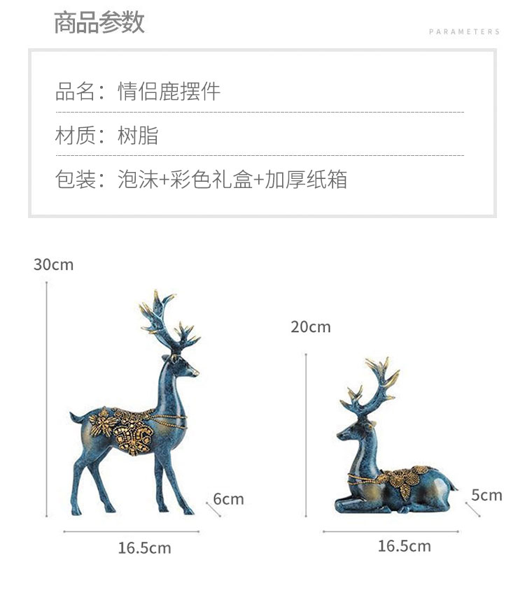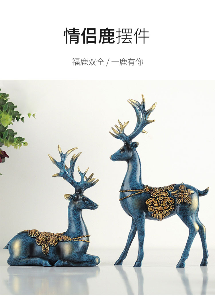 客厅现代工艺品情侣鹿摆件乔迁新居装饰礼品送朋友礼物树脂家居装饰品欧美风