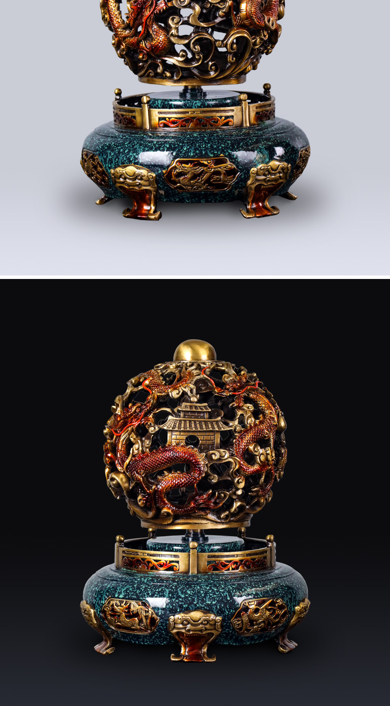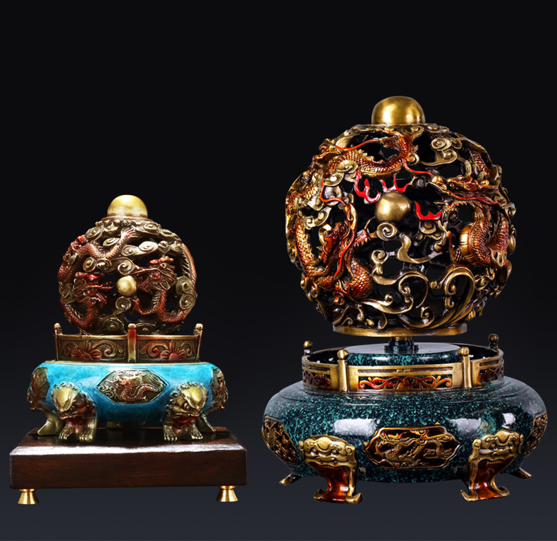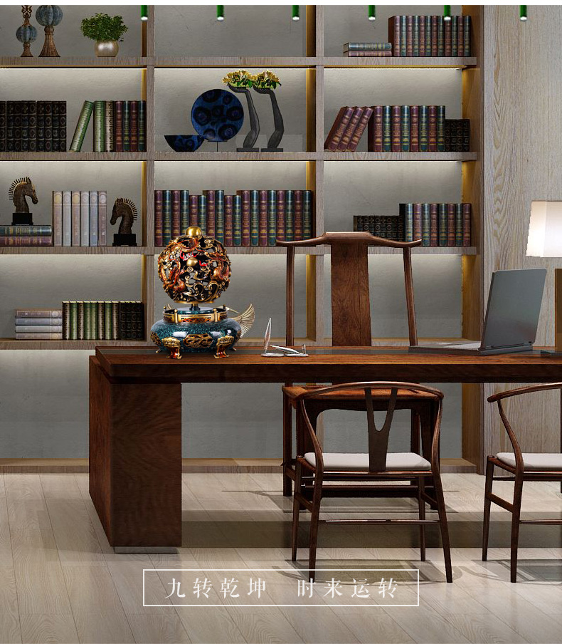 时来运转风水摆件貔貅聚宝盆 二龙戏珠客厅办公室招财摆设工艺品