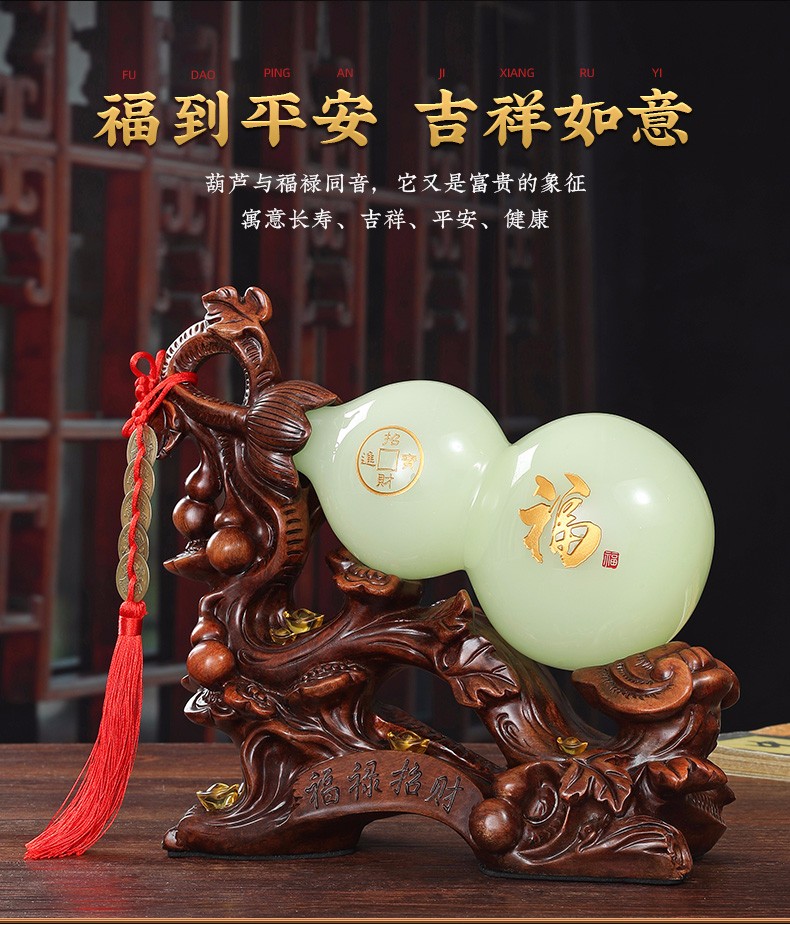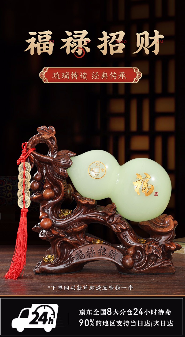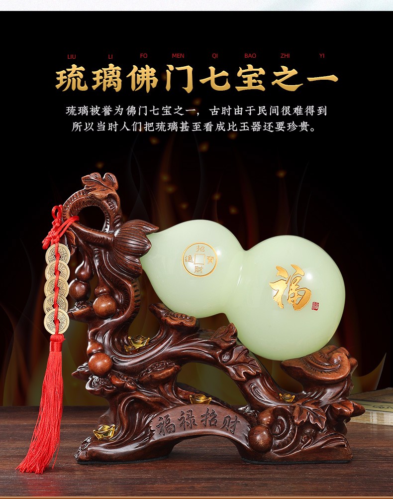 琉璃玉葫芦摆件工艺品 送朋友乔迁新居礼品 家居客厅玄关电视柜酒柜装饰品