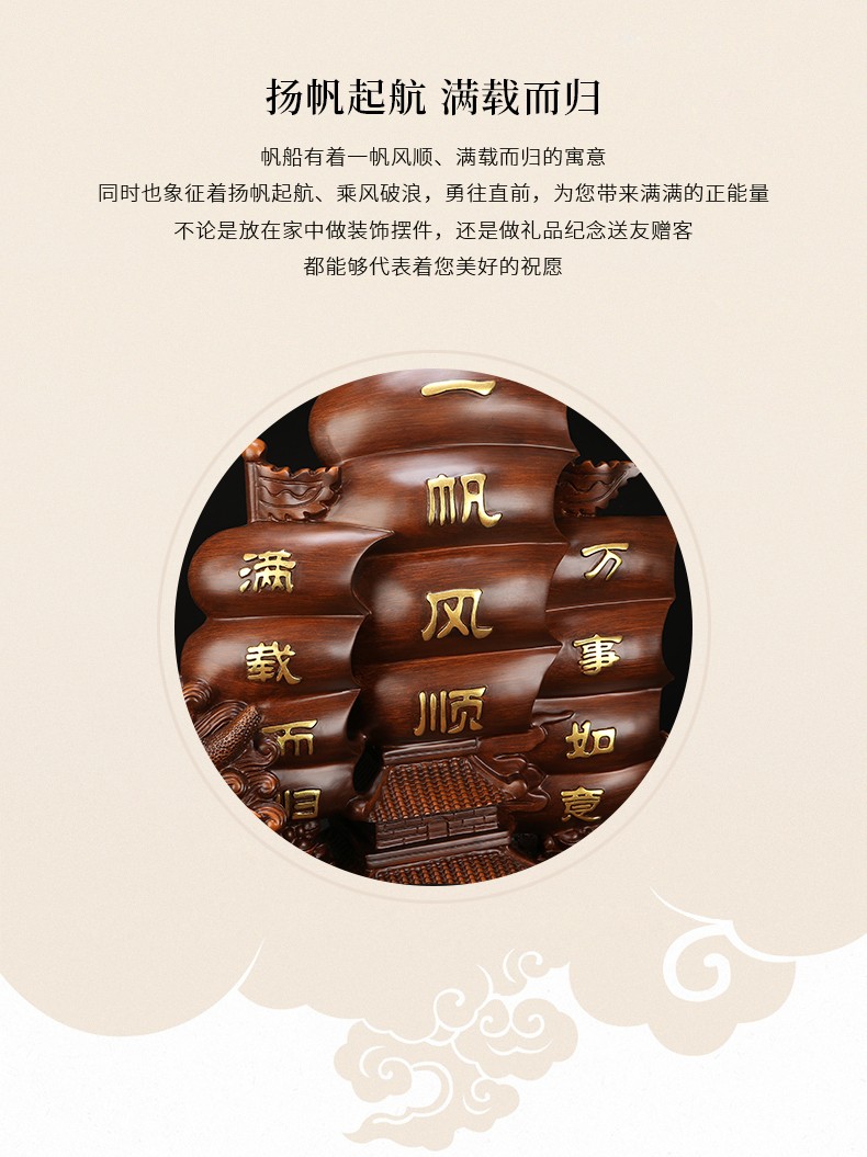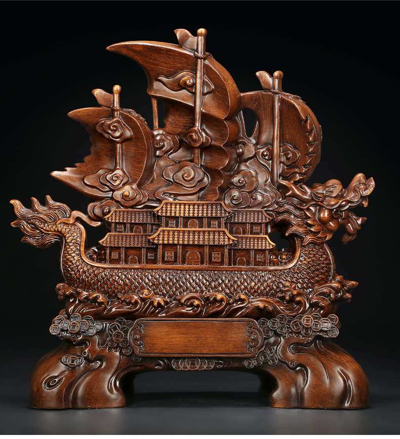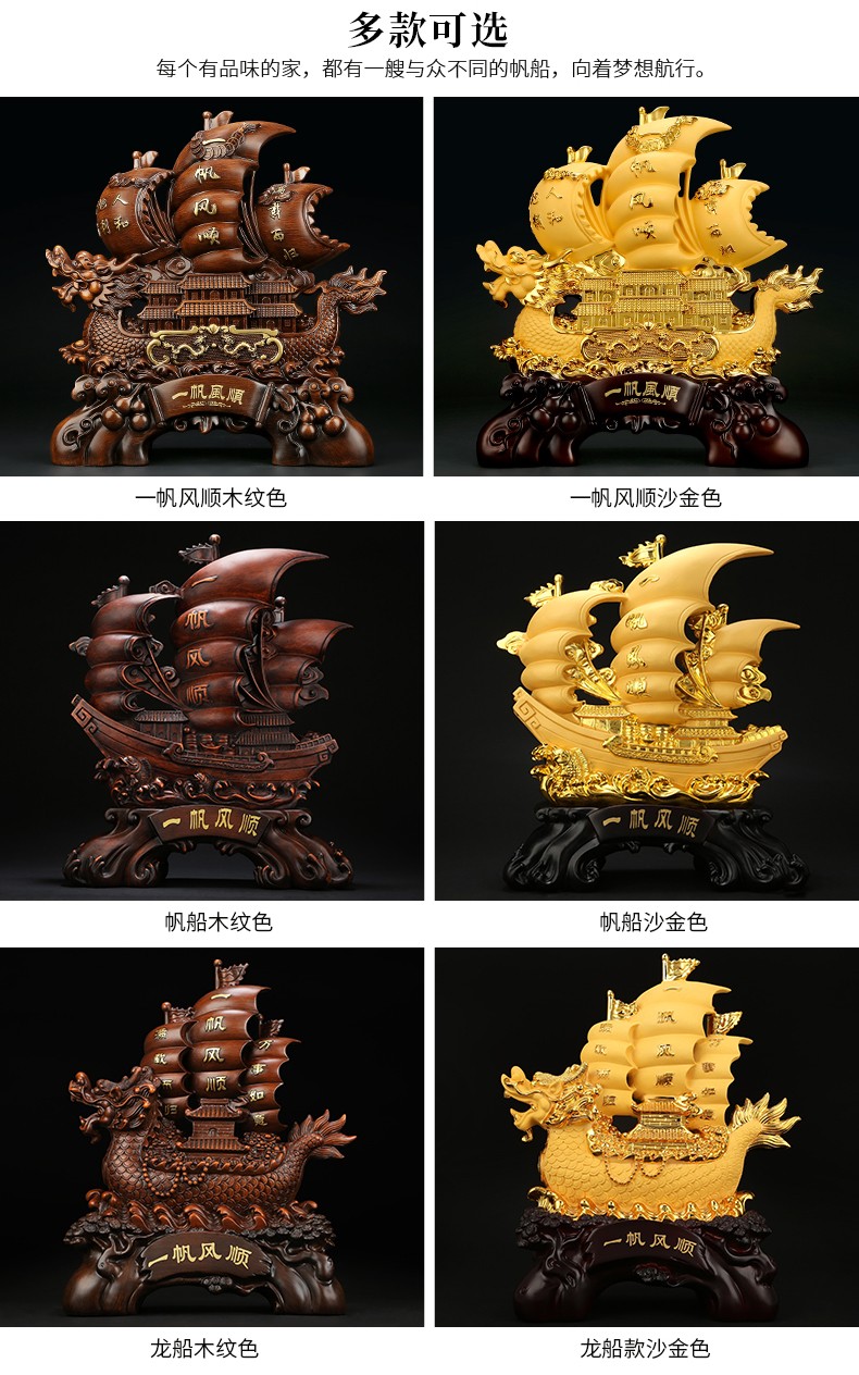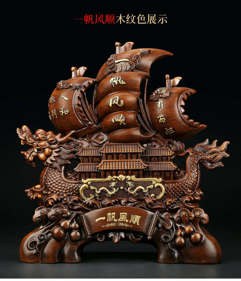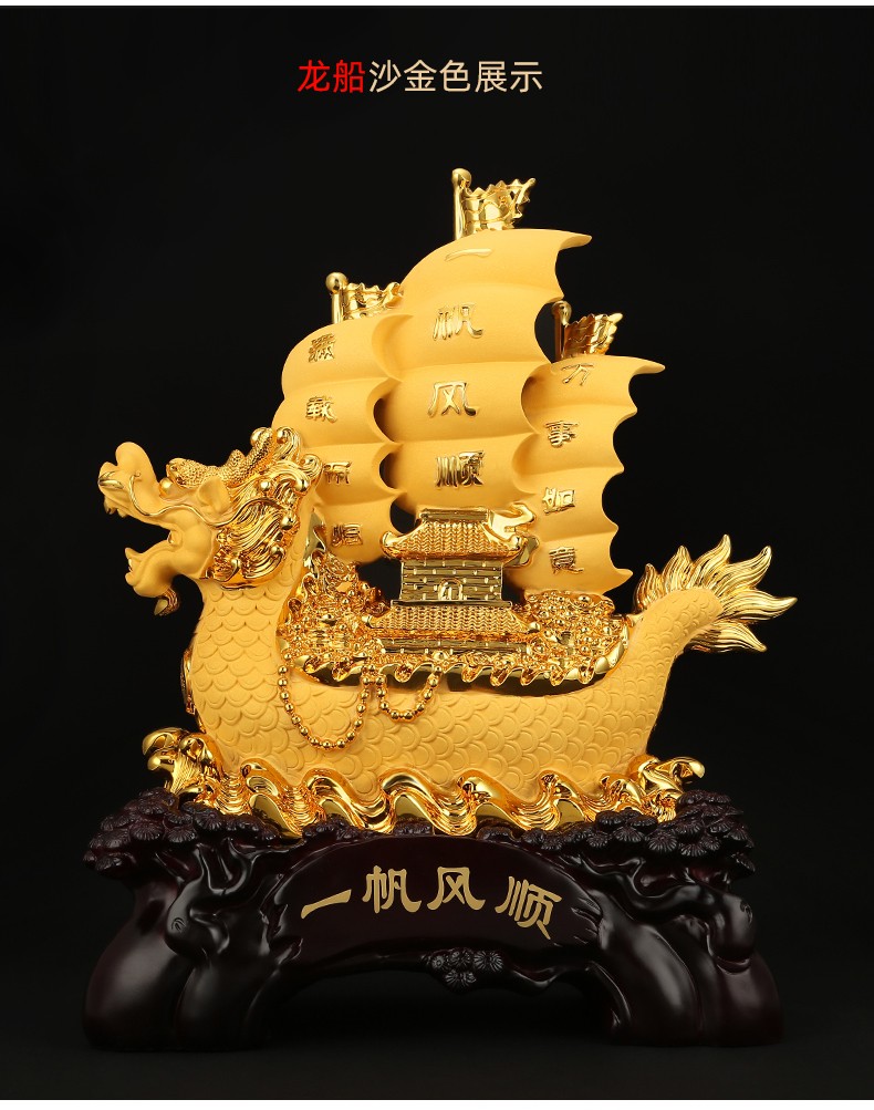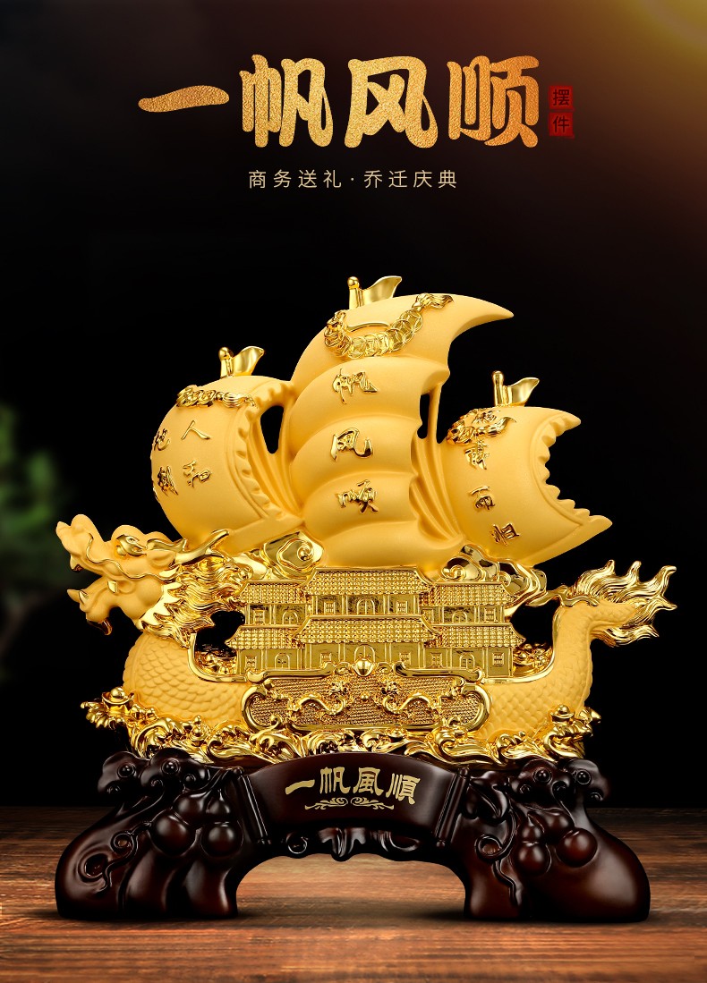 一帆风顺帆船龙船摆件 开业礼品家居客厅装饰风水工艺品乔迁送礼办公室店铺收银台商务摆件