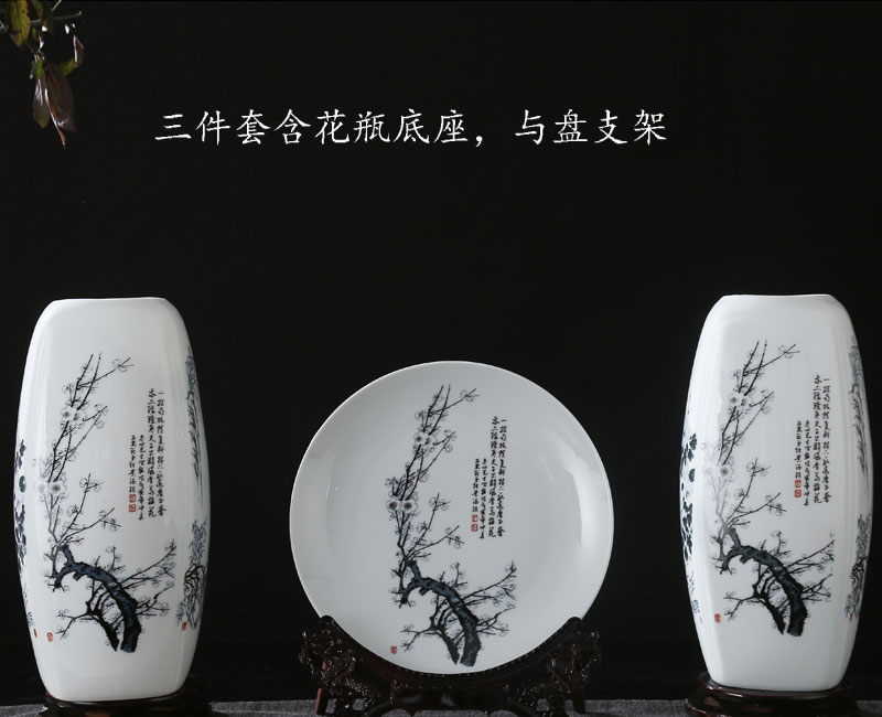 现代家居时尚简约客厅工艺品花瓶摆件 梅兰竹菊 淡蓝色三件