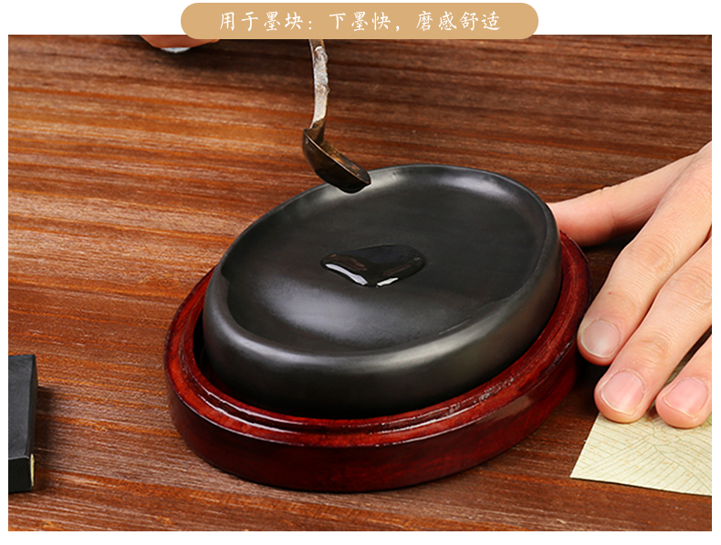 弘梅砚台歙砚 带盖天然原石古坑鱼籽纹6寸歙砚 文房四宝礼盒包装素砚送礼